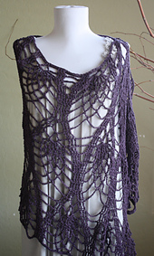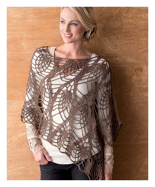 This lace design is a specialty that can only be created with crochet. It will be good for many seasons, so work this pattern in many different yarns! This poncho is made using a rectangle-shaped piece of crocheted fabric. The edge of the sleeve has a curvy shape created by