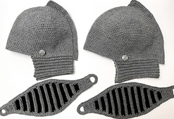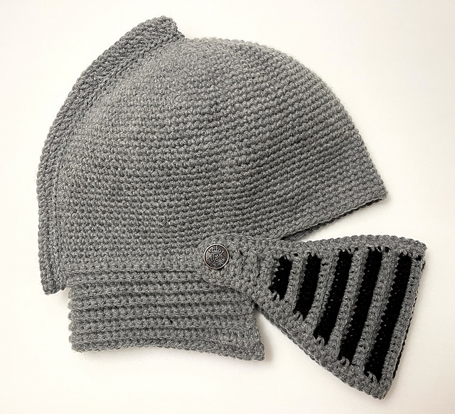 This is a crochet pattern for a knight helmet that will fit most adults with a head circumference between 20 to 22 inches.