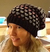 Finished length: approximately 10″ tall/long when laid flat. For a shorter beanie, eliminate an even number of rounds between Rounds 6 and 30, stopping when you’re close to the desired length.