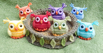 These little guys would look good in any color combinations. The owls and the leaves that decorate the nest are made with light worsted weight/DK yarn (worsted weight would work just as well) while the nest itself is crocheted up in lightening fast time with super bulky yarn.