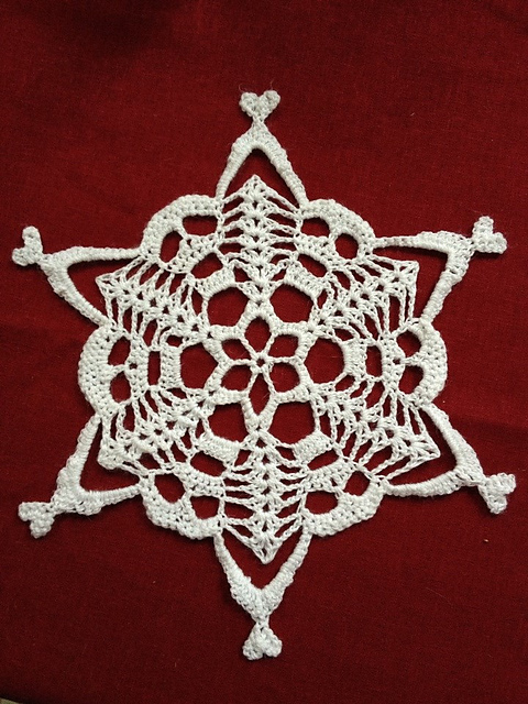 I created this pattern after being challenged by a friend to create a snowflake with skulls on it. Being a knitter at heart, I had only just begun to crochet when I broke my hand and found myself in a cast. It may seem like a complicated pattern but take heart! I created this and made a whole army of them after crocheting for 1 month.