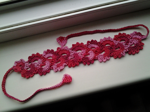 errata: the ends of the cords in the written pattern are made in dc's, and the ones in the picture in treble (triple) crochets, therefore, they look (and are) bigger.