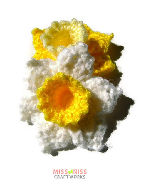 Pattern is for a 3 inch sized daffodil. You can use any size yarn or hook you want to change size to your liking.