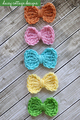 This adorable little bow can be worked up in 3 minutes or less. It's perfect for packages, headbands, or newborn bow ties.
