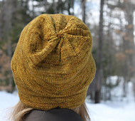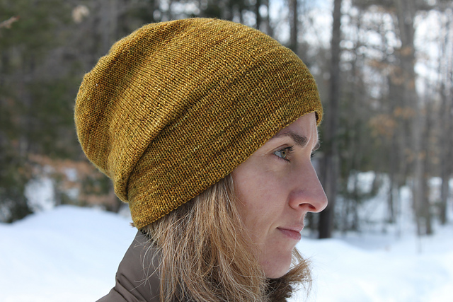 The Midas Hat is provisionally cast on and knit in the round in stockinette, which, I think, really showcases beautifully dyed yarn. It features a folded brim to maintain the clean, all stockinette stitch without a rolled edge. Plus the brim is wide enough to cover your ears and keep them warm. It uses an Elizabeth Zimmermann technique that helps keep the brim from flaring out, which can happen with folded hems.