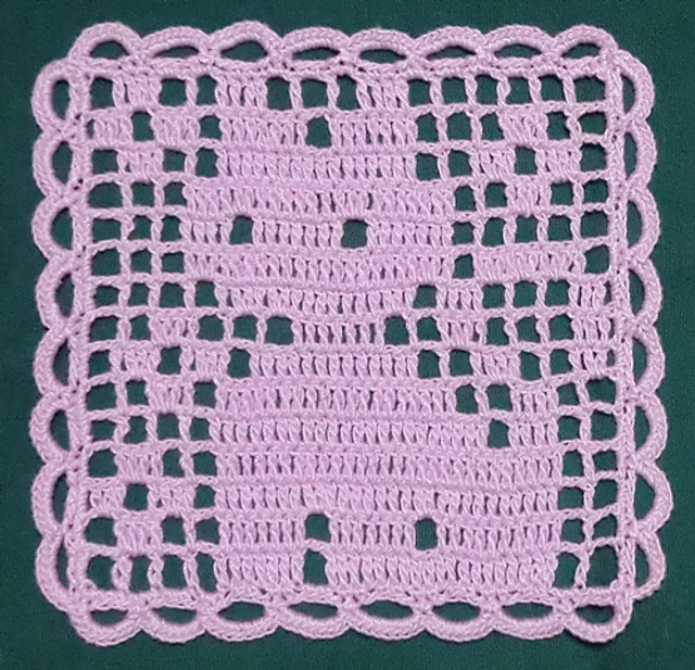 15マス×15マスの方眼編みのにゃんこコースターです。