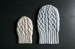 - 1 (2) skein(s) of Purl Soho’s [Alpaca Pure][1], 100% alpaca yarn. Each skein is 109 yards/ 100 grams; approximately 109 (218) yards required. We used Alpaca Pure in the color Heirloom White for the Baby Hat and Artemisia for the Adult Hat.