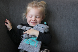 This lovely little robot is the perfect toy for tough little boys and girls! Even though the body is flat like a lovey, this doll will leave much more room for imagination and be a best friend to toddlers and even older children.