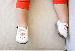 Mary Janes that can’t be taken off so easily by grabby little hands: the double strap and button ensure a snug fit for baby’s fat ankles.
