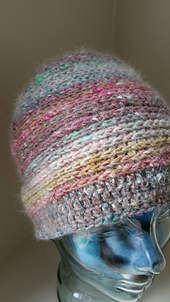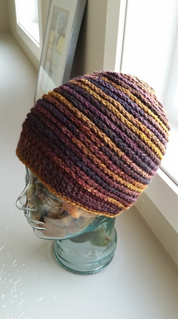 The stitches used to create this hat bring out the best in handspun or self-striping yarns. The rounds are worked in a spiral so there is no seam, and the stitches are worked into the back bar of the stitch creating a cool texture and a thick fabric for warmth. This hat is easily customizable and you can try it on as you crochet, ensuring the perfect fit.