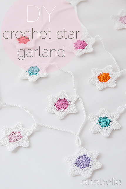 Easy, fresh and quick to make crochet stars Christmas garland.