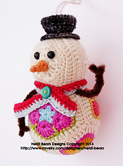 Twig the Snowman is the nineteenth of my patterns that makes use of the African Flower crochet motif and variations thereof, joined in a specific order to make a recognizable 3D item. I love this African Flower pattern and the creative possibilities of using it to make 3D items :) Twig the Snowman is an excellent stash buster project, as you only need to use very small amounts of leftover sock yarn to make a motif.