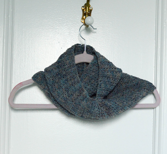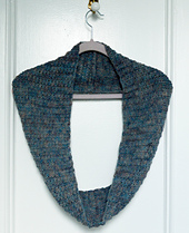 Combine a sock yarn, a larger than recommended crochet hook, and a textured stitch pattern to create a thin and warm circle scarf that is as stretchy as a fabric infinity scarf.