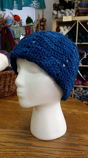 This hat makes a thinner fabric, due to stitches being worked in the back loop.