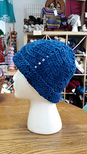 I wanted a hat to match a ripple scarf, but all the patterns I found started with magic rings and circles, not ripples. This hat starts with a foundation chain, but is worked in rounds. This lets the ripple start at the very top of the hat.