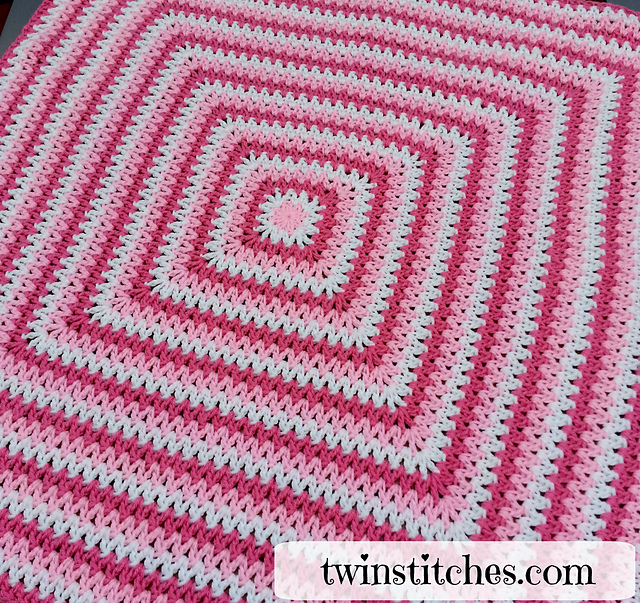 The pattern is written for a large baby blanket or continue rows of squares to make any size blanket you wish!