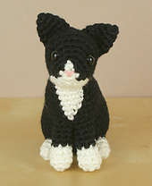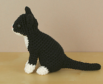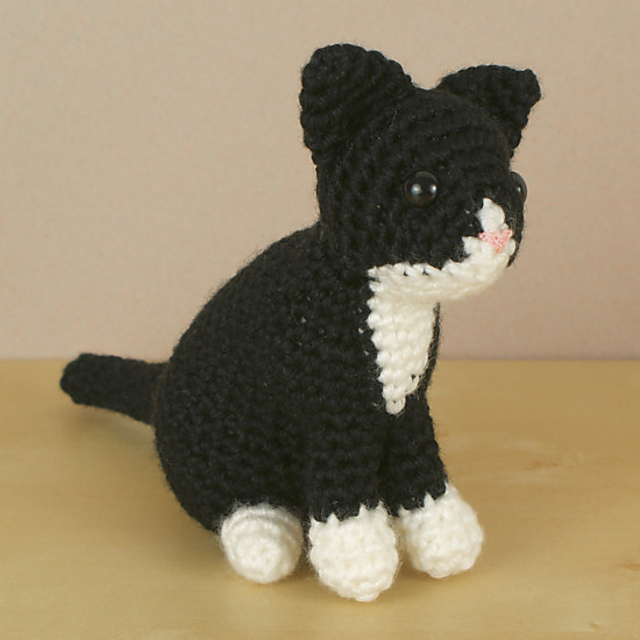 An original crochet amigurumi Tuxedo Cat pattern from the AmiCats range by June Gilbank.