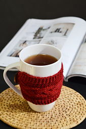Knitted flat with simple stitches, this is a great project for practising cables. The pattern is flexible and can be used for mugs of different sizes. I've made mine to fit a standard 11oz mug.