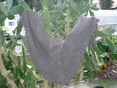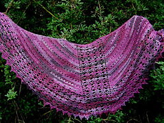 Here is Mrs' Hughes' Faroese shawl, wide enough to close in back if you wish. Variable sized, so it can be made as wide and deep as desired