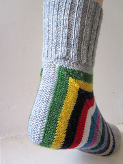 The specific construction makes this ideal to use up the heaps of small leftovers that every sock knitter seems to acquire, but it will also showcase nicely a self-striping yarn with more substantial stripes.