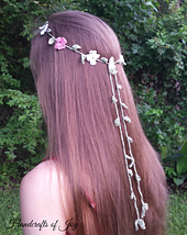 Put the final touch on a boho outfit or garden wedding look. This pretty accessory adds the crowning touch with delicate crocheted flowers in any color you wish!