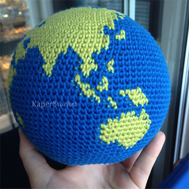 This pattern includes written instructions to create your very own globe. The globe is worked in the round, using only single crochet, increases, and decreases. Color changes are made using the invisible decrease technique.