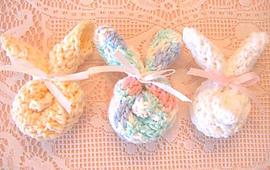 To make bunny: roll washcloth diagonally, bring points together and tie with ribbon to form "ears". Pull remaining point of cloth to front between ears to form "nose".