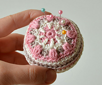 This pattern is written for one size. The size of the finished pin cushion depends on the yarn and hook you use. My cushion is approx. 6 cm (2 ½ inches) large across and 2.5 cm (1 inch) high.