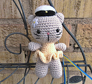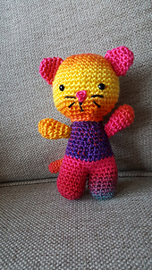 Free pattern for making a small amigurumi cat with joined legs. The kitty has two versions: with striped blouse or ruffled skirt. Of course you can make it without any clothing at all.