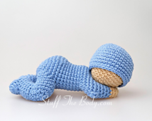 This sleeping little doll is made seamlessly which means you don't have to go through the frustrating process of sewing limbs to the body. It is quite small (the length of the finished toy is about 16 cm / 6 inches) and fast to make - one day is enough. So if you need to make a unique handmade gift for a baby shower or a nursery decoration but you don't have much time, this pattern is all you need!