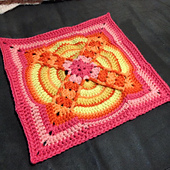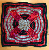 Samples crocheted in (mostly) Caron Simply Soft with an H/5.0mm hook and moderate tension measured 12". If you've crocheted my squares before you're probably used to them coming in under the 12" mark. This tends to be because I am a rather "loose hooker." You may find this square to be a little different. You'll notice I decreased my hook size. And I recommend you check your gauge. My squares that measured exactly 12" were 4.5" at the widest part of round 4.