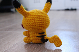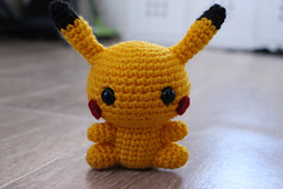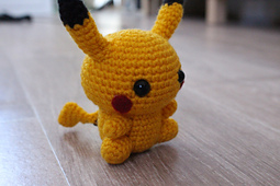 This digital PDF pattern for a Pikachu amigurumi crochet doll stands at approximately 3.15 inches (or ~8cm) tall when finished excluding the ears (so from the base to the top of the head).
