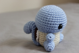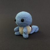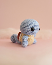 This digital PDF pattern for a Squirtle amigurumi crochet doll stands at approximately 3.15 inches (or ~8cm) tall when finished excluding the ears (so from the base to the top of the head).