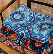 This crochet blanket design is based on traditional Persian ceramic patterns and was designed by Jane as a reaction to the demand for a project echoing the theme of the 2013 Crochet Club.