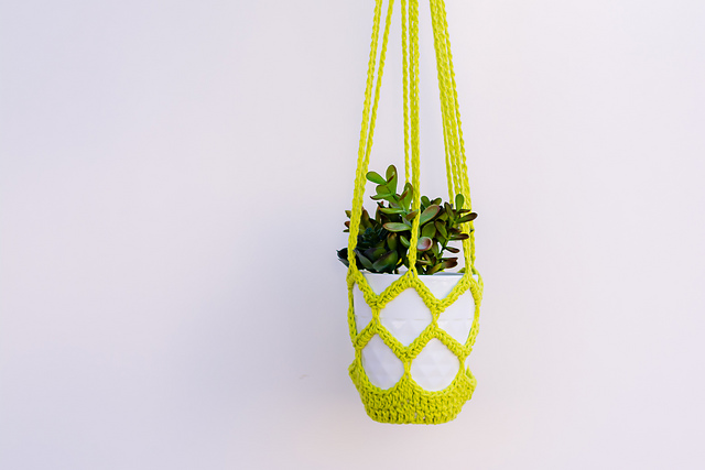 Crochet this fast and fun hanging plant holder; great for herbs, flowers, or your favorite plant!