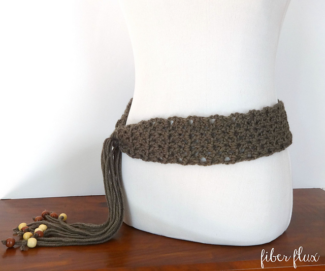 The Modern Taupe Belt is a pretty accessory that can add a little extra to any outfit. Crocheted in the lovely v-stitch and finished off with some fabulous wooden beads, it works up in no time flat!