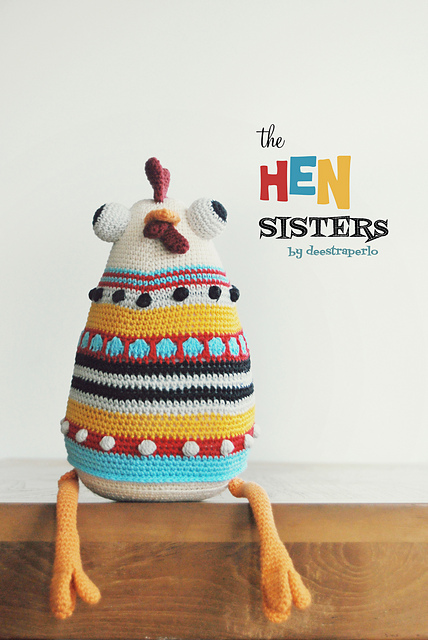 It's an amigurumi pattern suitable for an Intermediate + level or level 4. It's not difficult, but you have to know more than just the chain or single crochet. The Hen Sisters are composed by several pieces, different shapes, stitches and techniques, so you won't get bored and you'll learn a lot of new stuff.