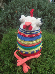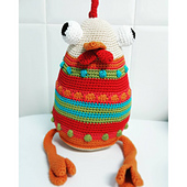 100% cotton in 10 colours (cream colour for the head and base, 5 colours (A, B, C, D, E) for the body, black and white for the eyes, orange or yellow for the beak and legs, red for the comb and wattles)