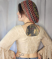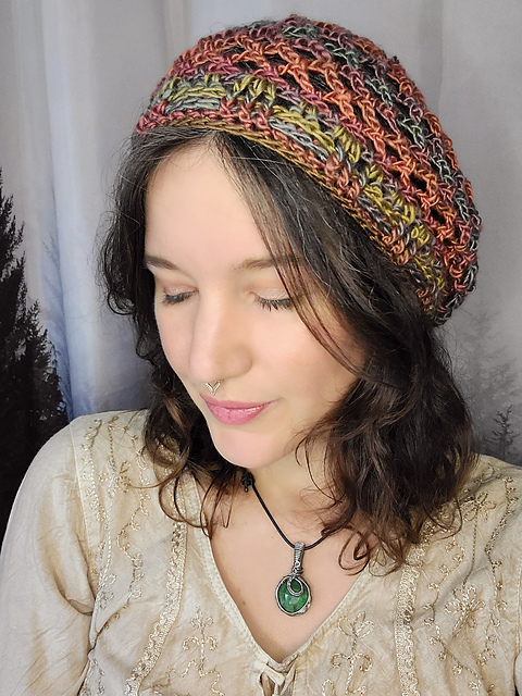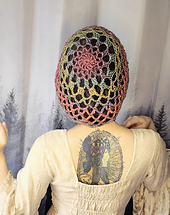 This pattern includes two different sizes of hat, a Small netted cap for those with less hair, and a Large mesh tam that can fit quite a lot of locks inside! This is an easy project with a quick finishing time that makes a really useful and pretty little accessory.