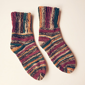 The pattern describes how to make a sock that will fit UK adult shoe sizes 3-8.