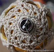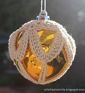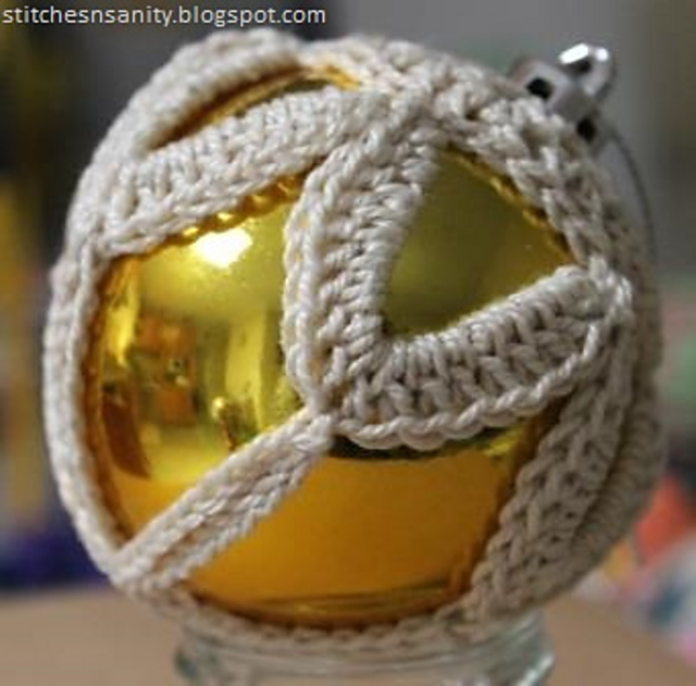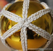The pattern was designed for baubles of 19.5cm circumference but could easily be adapted for larger (or even smaller) baubles.