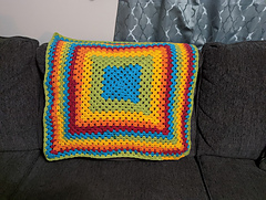 A bright and cheerful traditional granny square pattern - this blanket can be made in any colour combination you choose, and is ideal for a baby blanket/receiving blanket, lap blanket, sofa throw, car blanket and many other uses.