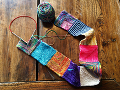 This recipe makes use of any 5 to 6 gram leftover sock yarn scraps you might have. You can make this blanket as small or large as you like.