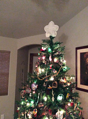 DROPS Christmas: Crochet DROPS Christmas tree star with lace pattern in ”Belle”