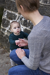 *Jen is wearing size SM (36.5”) with 2” of positive ease. Bodhi is wearing size 6-12 mo (20.5”) with 1” of positive ease.*