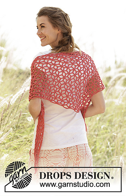 DROPS CROCHET Hook size 4 mm / G/6 – or size needed to get 17 ch/tr = width 10 cm / 4''. One star = approx. 7.5 cm / 2 7/8'' in width (i.e. from *-* on 3rd row) and approx. 7 cm / 2¾'' vertically after 4th row.