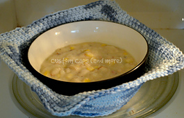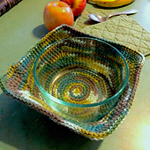 This pattern is GREAT for holding your hot bowl of soup OR cold bowl of ice cream!! It can also go in the microwave while re-heating items in your bowl and the corners can be used for carrying. ****Be careful to NOT get your hot pad wet before putting it in the microwave. This can cause serious burns!!****