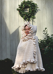 Cape is easy to make requiring double crochets throughout. Just be sure to increase in the rows as shown to create the fullness.
