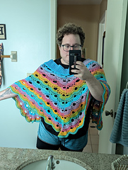 Vironcho ist ein Poncho, angelehnt an das bekannte Virus Muster, zwei-eckig und dreieckig.
