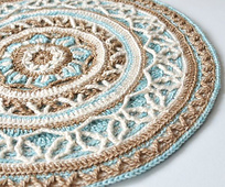 This Mandala is named after my friend Joana who inspired me to design it. It is made in overlay crochet technique with lots of front post stitches. The mandala is nicely structured and can be made in more than 3 colors. It can be used as a table decoration, appliqué for a pillow cover, stool cover, potholder and even a round pillow.